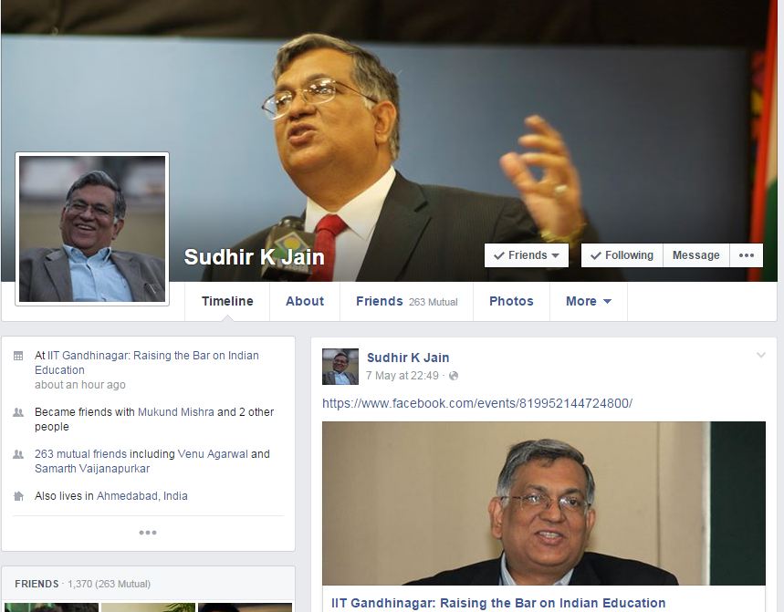 I IT-Gn director Prof Sudhir Jain has edged out his counterparts in Mica and Cept to become the most followed director on Facebook.